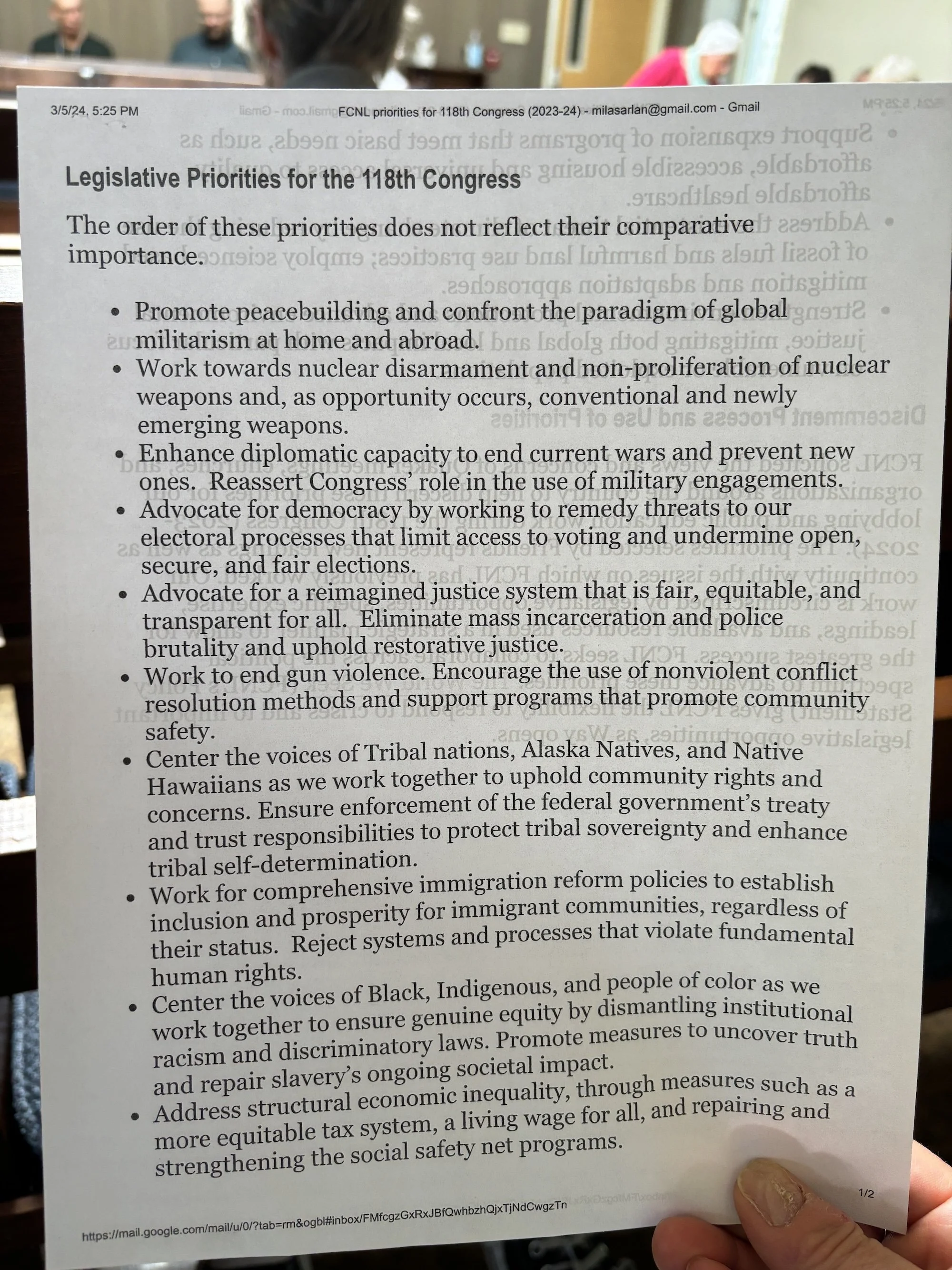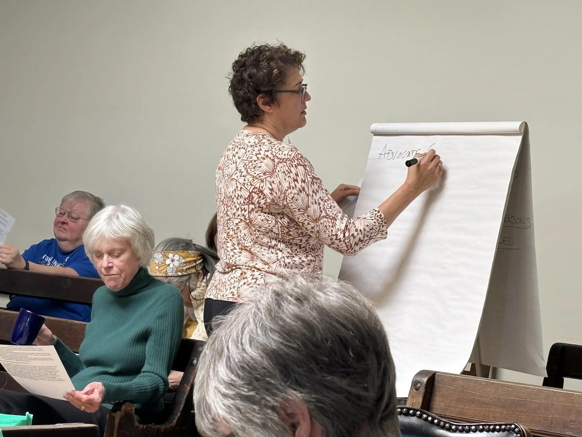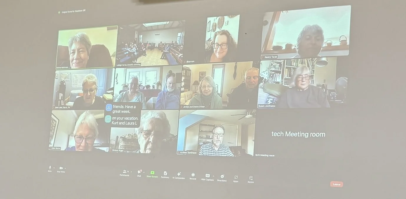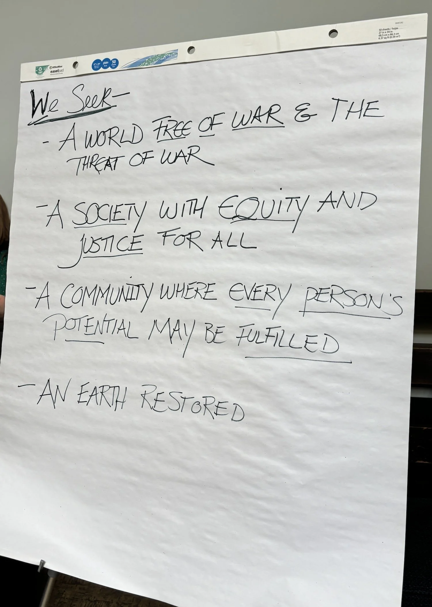 It was a happy coincidence that my visit fell on the same day Friends planned to gather to discern their legislative priorities for the 119th Congress, a request made every two years by Friends Committee on National Legislation (FCNL) to help guide their work as a Quaker lobbying organization. After a period of silent worship, we divided into four small groups – with one on Zoom – and discussed legislative priorities, using as reference points “The World We Seek” and “Legislative Priorities for the 118th Congress.” The groups then came together and began the discernment process, where everyone was able to express their thoughts and be heard. From this discernment came four priorities that will be sent to FCNL: