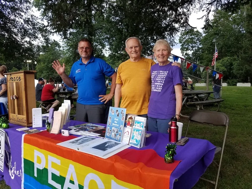 Southampton Friends Stephen Moyer, and Jim and Carolyn Michener spent two evenings in July doing Quaker outreach at this year’s Southampton Days.
